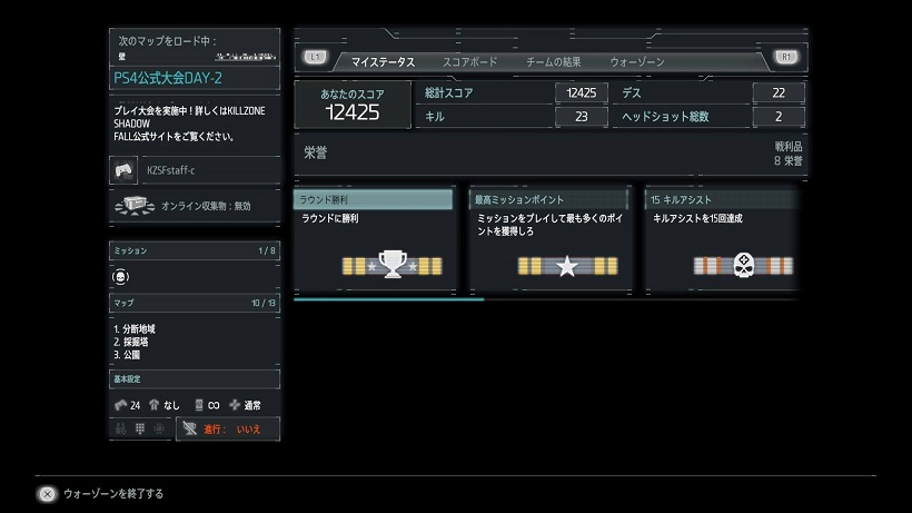 【プレイ日記】KZ:SF PS4公式オンラインマルチプレイ大会2日目に参加しました!